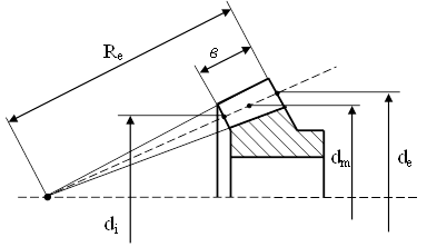 Производственными и чертежными размерами конических колес являются размеры по большому торцу. Обозначим модуль в этом сечении mte.