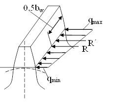 Но удельная жесткость геометрически подобных зубьев не зависит от их линейных размеров (модуля), т.к. увеличение плеч нагрузки компенсируется увеличением высоты сечения зубьев. Поэтому принимают, что удельная нагрузка распределяется по длине прямых и косых зубьев конических колес пропорционально упругим смещениям, т.е. по закону треугольника, вершина которого совпадает с вершиной делительного конуса, и что напряжения изгиба одинаковы по всей длине зуба. Это позволяет вести расчет по любому из сечения.
