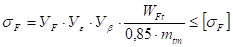 Формулы для расчета на прочность конических колес записывается по аналогии с формулами для цилиндрических колес.