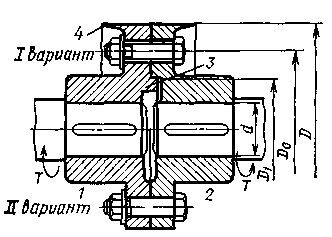 осевое смещение валов. В целях соблюдения правил техники безопасности выступающие части болтов закрывают буртиками 4 (I вариант). В тех случаях, когда муфта имеет общее ограждение, буртики не делают.