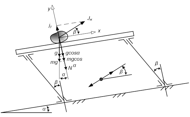Имеется плоскость, наклоненная под углом α к горизонту и получающая от внешнего источника энергии колебательное движение с ускорением Jж, направленное под углом β (рис. 18.1).