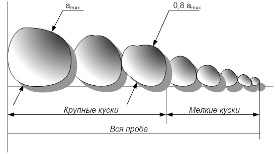 Куски груза размером от 0,8·атах до атах составляют группу наибольших кусков. Размер типичного куска: