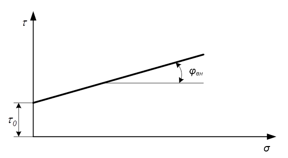 Угол наклона прямой φвн, называемый углом внутреннего трения груза, выражает зависимость сопротивления сдвига материала (касательных напряжений)