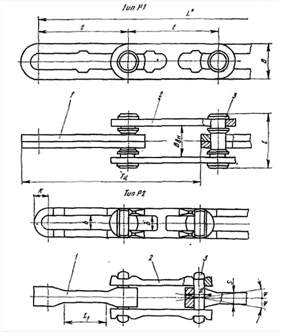 Конструкция пластинчатых цепей представлена на рис. 4.5.