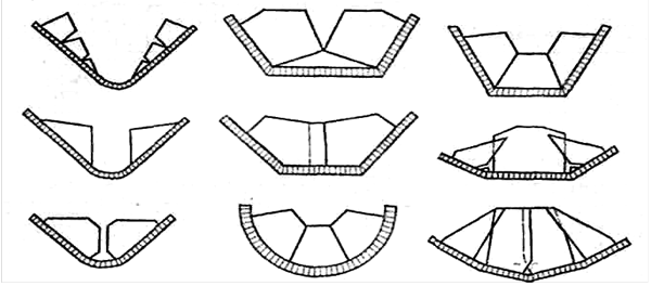 В зависимости от угла подъема и вида груза перегородки могут иметь различную конфигурацию (рис. 4.14).