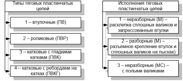Рис. 4.3. Классификация пластинчатых тяговых цепей