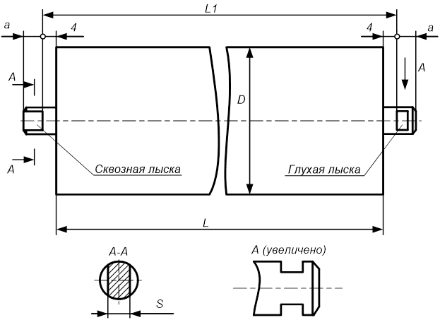 Рис. 5.4. Ролик: D – диаметр ролика, мм; L – длина ролика, мм; L1 – сборочная длина ролика, мм; S – толщина лыски, мм; a – длина лыски, мм.