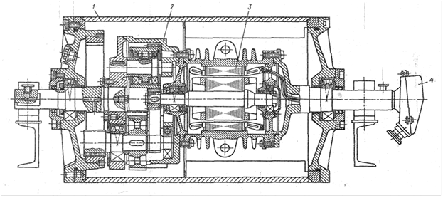 Рис. 6.8. Мотор-барабан: 1 – барабан; 2 – редуктор;