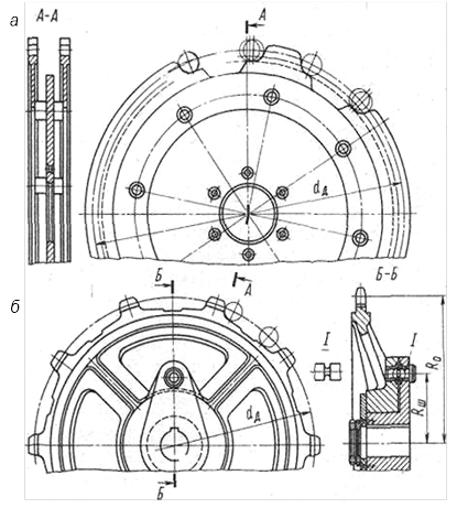 Рис. 6.4. Звездочки: а – для двухшарнирной цепи; б – для разборной цепи