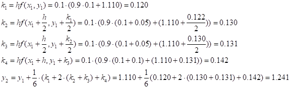 Наибольшее применение на практике получил метод Руте-Кутта 4-го порядка: