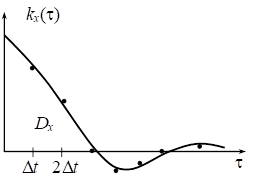 В связи с ограниченностью числа наблюдений функция не будет строго постоянной; ее придется осреднить и заменить некоторым постоянным ; аналогично, осредняя значения  для разных , получим корреляционную функцию .