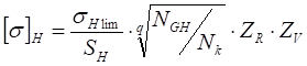 Запишем выражение для контактных напряжений [σ]H при назначенном ресурсе Nk: