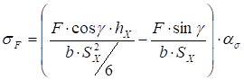Зуб в опасном сечении испытывает сжатие от Fрад и изгиб от Fокр ;