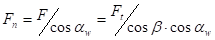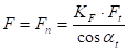 Силы принято определять в полюсе зацепления, где вся нагрузка передаётся одной парой зубьев. Распределённую по площадке контакта нагрузку заменяют равнодействующей Fn , нормальной к поверхности зуба.