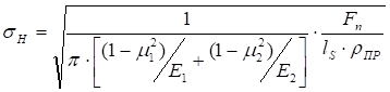 Контакт двух зубьев рассматривается как контакт двух цилиндров с радиусами кривизны