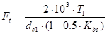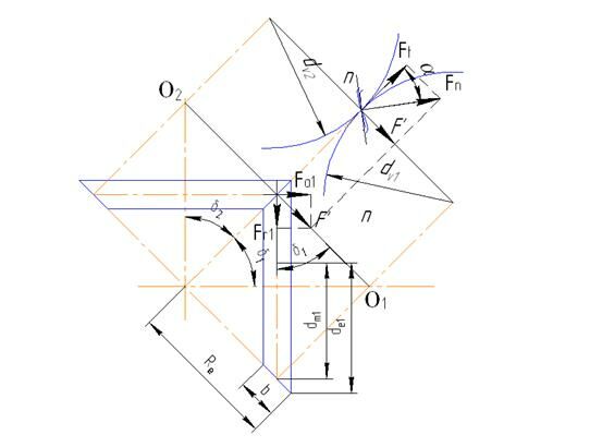 Расчетная нагрузка принимается равной силе, приложенной к средней по ширине венца делительной окружности конических колес.