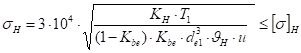 Кроме того, вводим установленный опытным путем коэффициент понижения несущей способности конических передач по сравнению с эквивалентным цилиндрическим (uH = 0,85).