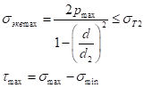 Посадочное давление связано с расчетным натягом δ (мкм) посадки известной из сопромата формулой Ламе (давление в толстостенных трубах):