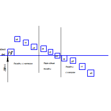 Поле допуска основного отверстия обозначают Н с цифрой соответствующего квалитета (Н7, Н5). Поле допуска вала – строчная буква с цифрой s6, e8 и т.д.