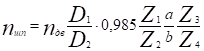 0,985 - коэффициент, учитывающий скольжение ремня.