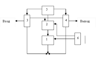 Программируемый контроллер (ПК) состоит из центрального процессора 1 (управляющего устройства), постоянного запоминающего устройства 2, входного 3 и выходного 4 устройств и сканатора 5 (генератора импульсов). К контроллеру можно подключить программную панель 6 (загрузчик программ), содержащую декадные переключатели и клавиши. Программу вводят последовательно нажатием клавишей с обозначением логических элементов. В режиме записи программа записывается в устройство 2 и запоминается в нем. В режиме работы сканатор 5 поочередно подключает к процессору 1 входное и выходное устройства. В процессоре 1 согласно программе производятся заданные логические операции. К контроллерам могут подключаться дисплеи, накопители на магнитных кассетах, печатающие устройства, регистрирующие состояние оборудования, затраты основного и вспомогательного времени, аварийные ситуации и т.д.