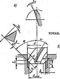 При рассмотрении углов режущей части необходимо отметить, что углы g и l1 по длине режущей кромки переменны, угол aN при заточке задней поверхности по плоскости постоянен, а при других способах заточки также изменяется вдоль режущей кромки.