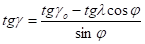 Вычислив угол l и зная угол gо = w в каждой точке режущей кромки, можно определить и значения переднего угла в этой точке по формуле: