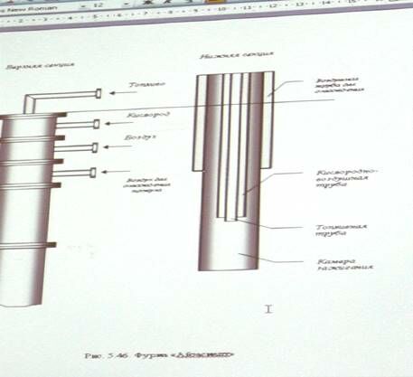 Есть еще вариант со сложной фурмой из пяти концентрически труб. В них вместе с окислителем можно давать газ и жидкое топливо (мазут, ДТ, сырая нефть подаются по наружной межтрубной полости), так оно охлаждает корпус фурмы. По мере его прохождения он нагревается для более полного сгорания топлива.