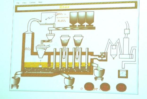 Отходящие газы от плавильной печи проходят через котлы-утилизаторы, сухие электрофильтры, и смешиваются в теплоизолированном газоходе, после чего их подают в СПЦ. Работа завода полностью соответствует требованиям экологии. Фактическое содержание SO2 в трубе составляет 300-400 ppm (массовых частей на миллион), при ПДК = 500.