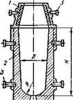 В изложницах для крупных слитков кипящей, а также полуспокойной стали величина отношения H/D должна составлять 3,0—3,5; для мелких слитков (< 1 т) она достигает 5—7. Увеличение отношения H/D по сравнению со слитками спокойной стали допустимо в связи с тем, что в слитках кипящей и полуспокойной стали не образуется осевой рыхлости. В то же время для кипящей стали важно ограничивать абсолютную величину высоты слитка и изложницы. Слишком большая высота ведет к увеличению ферростатического давления в нижней части затвердевающего слитка, что затрудняет кипение металла и способствует уменьшению толщины здоровой корочки.