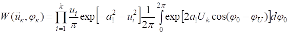 Первая “ступень” неопределенности – сигнал с известной амплитудой, фаза  которого априори неизвестна, но остается постоянной за все время принятия решения (сигнал такого типа относится  к классу квазидетерминированных). Соответствующая этому случаю совместная плотность распределения отсчетов амплитуды  и фазы  (3.1)  должна рассматриваться как условная при некотором значении фазы  и интегрироваться по ее априорному распределению, которое будем считать равномерным в интервале . Итак