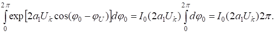 Последовательность операций при выводе формулы  та же самая, что и для сигнала с постоянной фазой, разница лишь в том, что усреднение функций правдоподобия здесь производится  для каждого отсчета независимо. При этом интегрироваться должны одномерные функции правдоподобия огибающей , которые для каждого конкретного значения начальной фазы  рассматриваются как условные (напомним, что для того, чтобы получит условную плотность, необходимо совместную плотность разделить на плотность распределения условия):