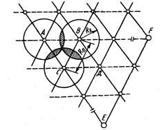 . При этом образуются области, у которых возможен уверенный прием одновременно от нескольких ТРП (на рисунке 6.19 они заштрихованы). Радикальным средством ослабления взаимных помех для ТВ приемников, расположенных в этих областях, является работа соседних ТРП в разных ТВ радиоканалах. В этом случае используется избирательность приемника по соседним каналам приема (см. рисунок 6.3) Распространяя этот принцип на последующие области и имея в распоряжении ограниченное число возможных радиоканалов Nк, в некоторых пунктах F и Е неизбежно придется ставить ТРП, работающие в том же радиоканале, что и ТРП в пункте А (рисунок 6.19). Конечно, в области, где осуществляется уверенный прием от ТРПА (в зоне А), невозможен уверенный прием от ТРПF и ТРПE, однако сигналы от этих передатчиков могут создать помехи, которые не подавляются ТВ приемником в зоне А.