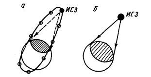Космические линии. Спутниковая линия связи (СЛС) представляет собой РРЛ с одной промежуточной станцией, размещенной на искусственном спутнике Земли (ИСЗ). Спутник движется по достаточно высокой орбите, откуда «видна» очень большая территория Земли, поэтому через бортовой ретранслятор ИСЗ могут связываться между собой любые земные станции, находящиеся на этой территории. В то же время на ИСЗ можно использовать антенны с узкой диаграммой направленности, при которой энергия передатчика спутника концентрируется на ограниченной площади. Это позволяет эффективно использовать ИСЗ для обслуживания небольших определенных зон.