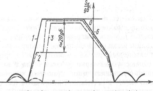 Параметры РСИ и РСЗ, показанные на рисунках 6.3, 6.4, а также разнос частот между соседними радиоканалами определяются стандартами, которые в разных странах отличаются друг от друга. В соответствии со стандартом, принятым в СНГ , ΔFM = 1,25 МГц, ΔF = 0,75 МГц, Δfрк=8 МГц (см. рисунок 6.3); уровни СИ, ГИ и белого указаны на рисунке 6.4; разнос частот fни i, и fнз i+1 составляет 3 МГц в I диапазоне и 1,5 МГц – во II–V, разнос частот fни i и fни i+1 – 9,5 МГц в I диапазоне и 8 МГц – во II–V диапазонах.