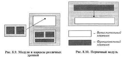 Заполненный модулями каркас сам может служить модулем, используемым в каркасе более высокого уровня. И наоборот модуль может быть каркасом для модулей более низкого уровня (рис. 8.9).