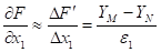 Для вычисления приращений функции в направлении осей ее аргументов построим две дополнительные точки N и P, лежащие вблизи начальной точки поиска М на расстояниях ε1 и ε2 сответственно. Вычислив значения целевой функции в этих точках, а затем вычислим приращения в направлении аргументов.