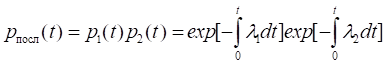 qпосл(t)=q1(t)+q2(t)-q1(t)+q2(t)=1-P1(t)+1-P2(t)-[1-P1(t)][1-P2(t)]=
