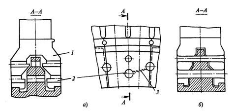 Особенно высокой оказывается концентрация напряжений, вызванная "пересечением" различных концентраторов. На рис. 1.43 показано крепление замковой лопатки с грибовидным хвостовиком, закрепляемом на диске с помощью двух заклепок. Отверстия под заклепки выполнены очень неудачно: их оси проходят через зоны нижней опорной поверхности в хвостовике. В этом случае коэффициенты концентрации, вызванной отверстием под заклепки и скруглением паза хвостовика, перемножаются, и концентрация оказывается очень высокой. Следует добавить, что в этом конкретном случае сечения заклепки подвергаются не только напряжениям среза, но и изгиба, на который они не рассчитаны. На одной из турбин произошло разрушение замковой лопатки регулирующей ступени, вызванное только что описанным обстоятельством. Разрушаясь, лопатка и ее отдельные куски явились теми "посторонними" предметами, которые вызвали поломку нескольких последующих ступеней ЦВД.
