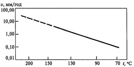 Рис. 2.17. Влияние температуры на скорость роста трещины коррозии под напряжением в агрессивной среде