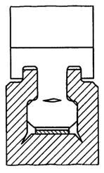 Пример 2.11. В практике эксплуатации французских турбин мощностью 125 МВт было более 20 случаев (на 18 турбинах) появления трещин в узком сечении щеки обода диска (рис. 2.19). Причинами появления трещин явились постепенное ослабление крепления лопатки в пазе диска, снижение частоты собственных колебаний, усиление вибрации лопаток и появление знакопеременных напряжений в ободе диска. Одновременно с трещинами в ободе возникли трещины и в узком сечении хвостовиков лопаток.