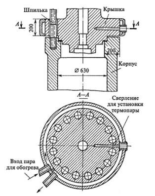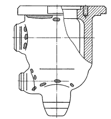 Для уменьшения температурных напряжений, возникающих в корпусах клапанов при пуске, тщательно продумывают их форму с тем, чтобы избежать смежных элементов резко различной толщины; фланцы корпусов (рис. 3.6) делают по возможности уже, а переходы к стенке выполняют большим радиусом. До пуска самой турбины часто предварительно прогревают клапаны с небольшой скоростью. На рис. 3.6 показан кожух, приваренный к крышке стопорного клапана по предложению ВТИ; в кожух перед пуском подается горячий пар для предварительного прогрева крышки.