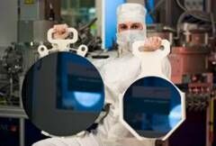 | Рис. 2.1. Кремниевые монокристаллические пластины а – полированная кремниевая пластина, б – сравнение пластин диаметром 300 и 400 мм. |