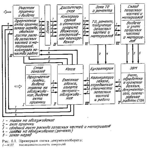 Примерная схема документооборота на СТОА (рис. 7.1) предусматривает основные этапы и маршруты прохождения документации.