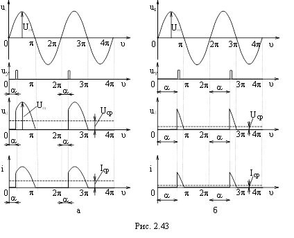 В рассматриваемой схеме такой режим возможен только гипотетически. Действительно, при отрицательном значении Uср среднее значение тока также должно стать отрицательным. Иными словами направление протекания тока должно изменится, а это невозможно в силу односторонней проводимости вентилей.