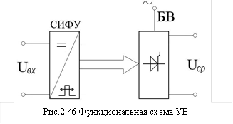Из рассмотренного не сложно заметить, что с точки зрения функционального назначения в управляемом выпрямителе можно выделить два блока (рис. 2.46): СИФУ и блок вентилей (БВ). В рассмотренных схемах БВ состоит из одного тиристора, в более сложных схемах тиристоров несколько.