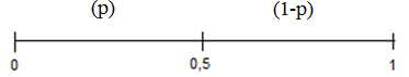 Моделируем случайное событие с вероятностью p. Интервал [0, 1] делим на два участка: p и (1– p). Генерируем равномерно распределенную последовательность чисел и определяем их попадание на данные участки. Если попадание на участке p, то событие произошло, следовательно, фиксируем логическую 1. Если попадание на участке (1 – p), то событие не произошло, следовательно, фиксируем логический 0.