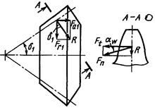 Силы в коническом зубчатом зацеплении. В конической передаче местом приложения силы F