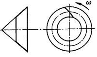 В передаче с круговым зубом во избежание заклинивания зубьев при значительных зазорах в подшипниках необходимо обеспечить направление осевой силы Fa1 на ведущей шестерне к основанию делительного конуса. Для этого направление вращения ведущей шестерни (если смотреть со стороны вершины делительного конуса) и направление наклона зубьев должны совпадать. По рис. 47 шестерня вращается против хода часовой стрелки, т.е. влево, и зуб шестерни левый.