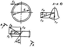 Для расчета валов и опор силу Fn удобно представить в виде составляющих (рис. 37): Ft, Fa, Fr.